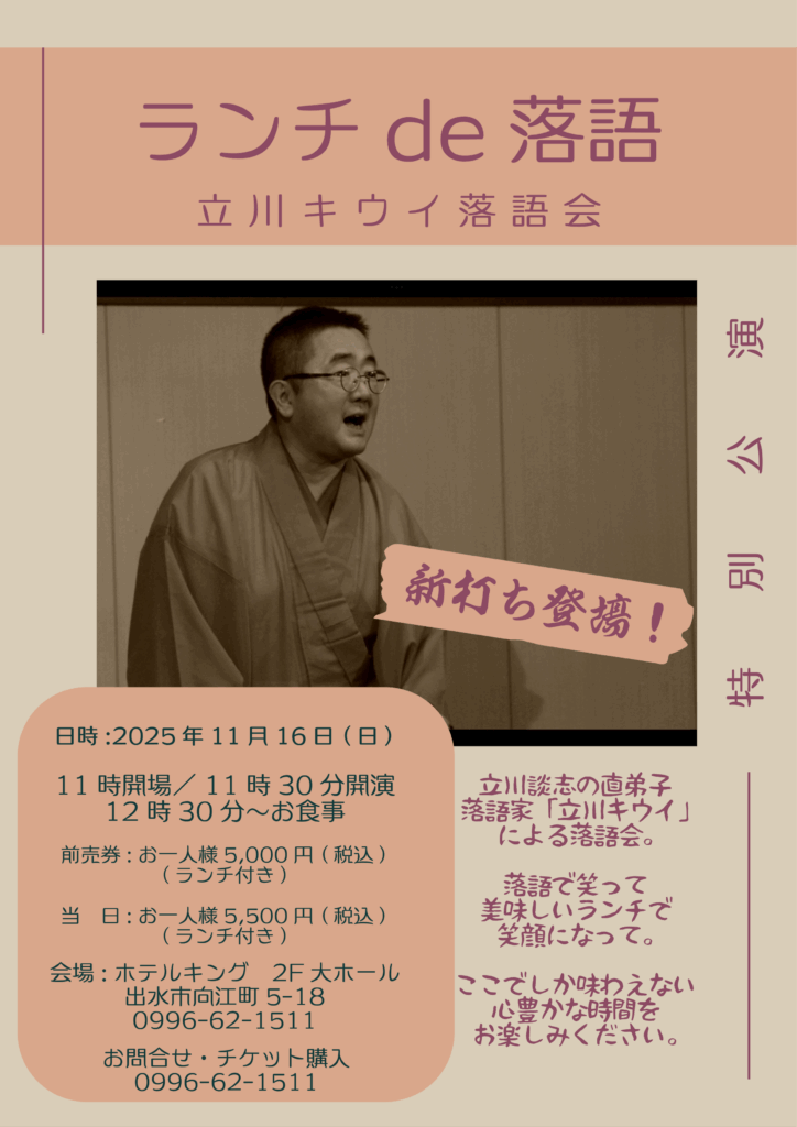 ホテルキングで、心もお腹も満たされる「ランチde落語」をお楽しみください。